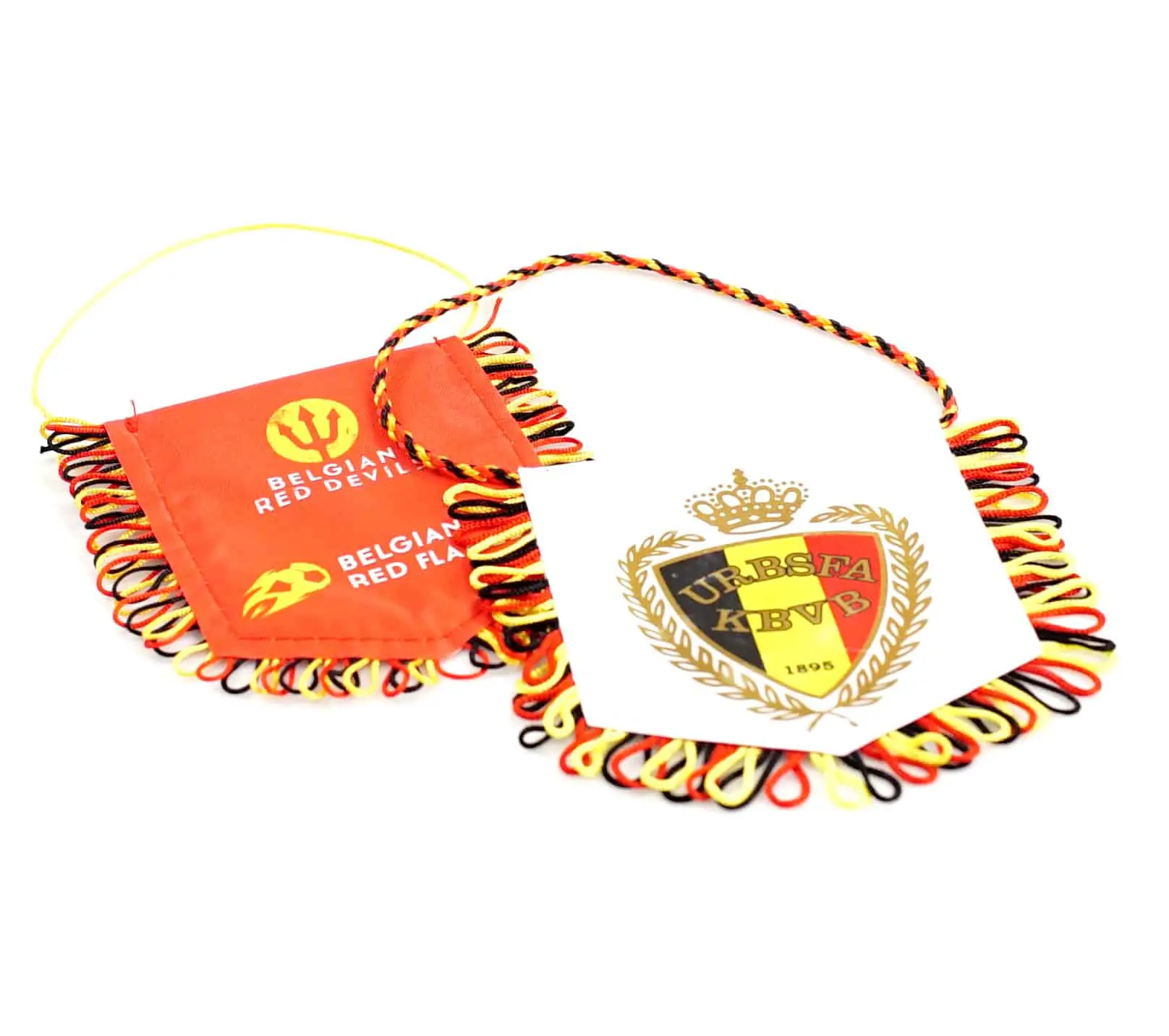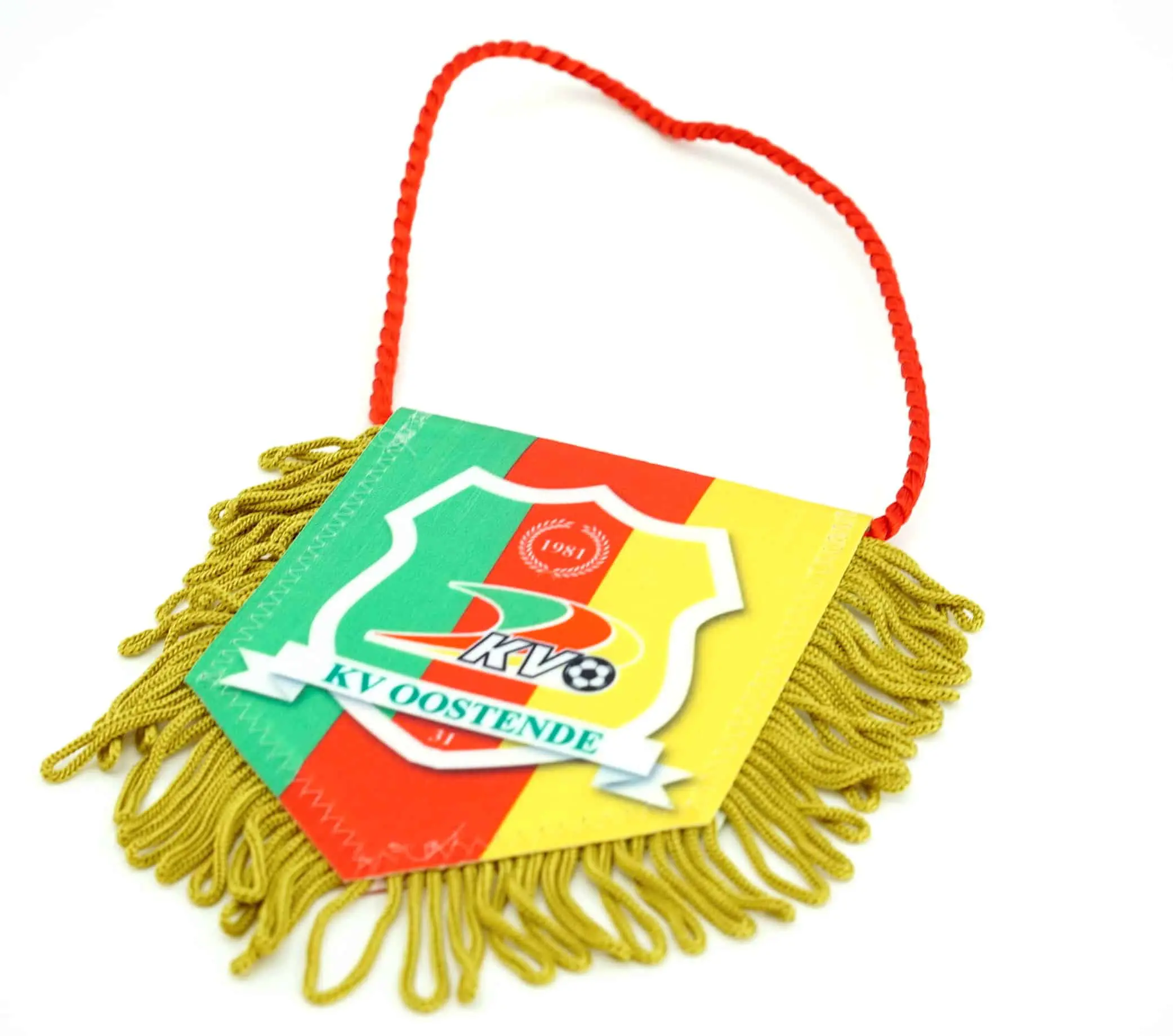 nThe banners can be both woven or printed with your logo, game info or palmares. The pennants come with or without fringes. There are different shapes available such as a triangle, a pentagon or a kind of quadrilateral with a rounded bottom.